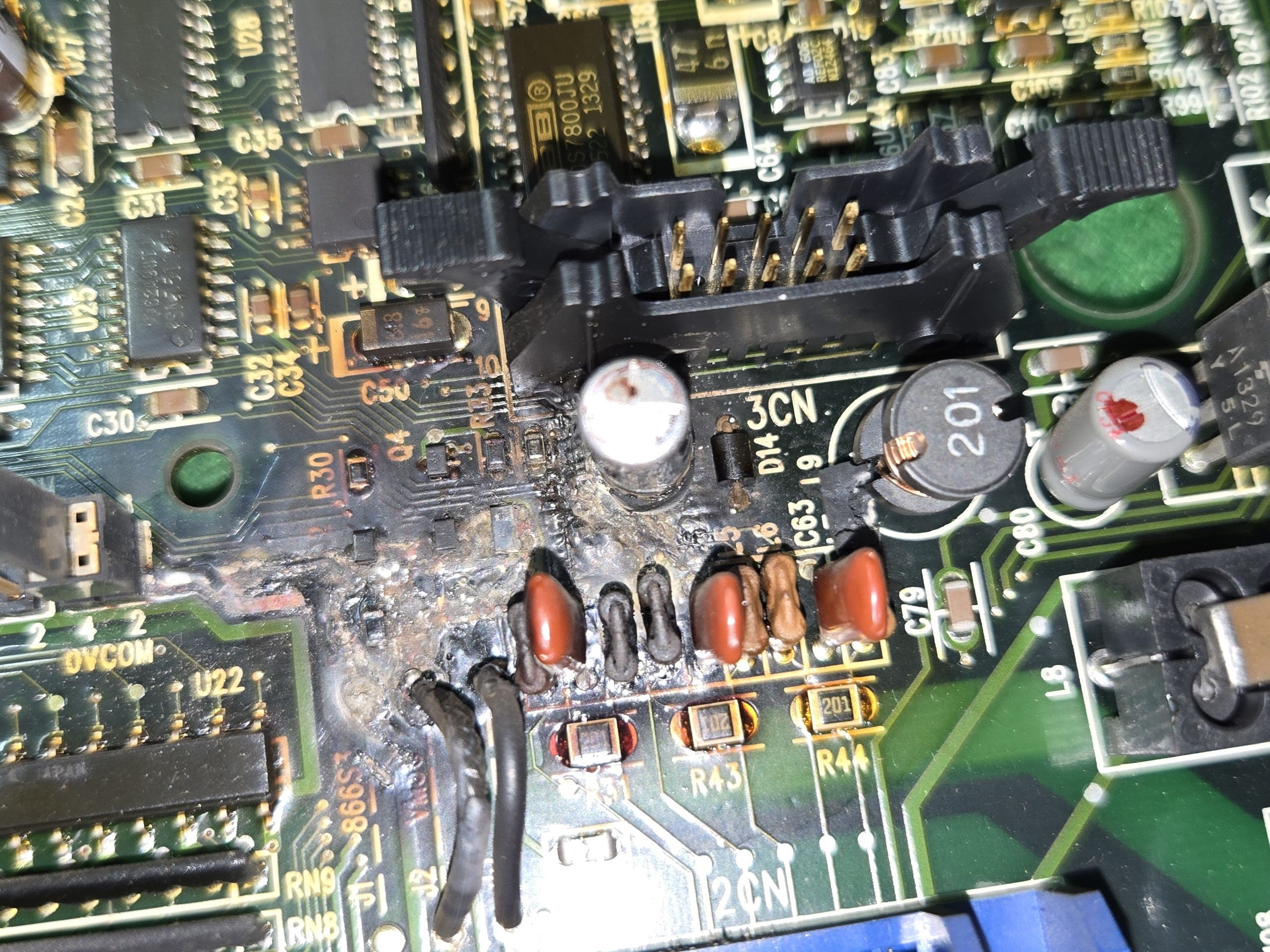 chip,ic,burning,버닝,탄것,형체를 알아보기 힘든,형체를 알아보기 어려운,분석,회로,탄것,소화,터진것,배선,비교,검증,검토,기판탄것 view1